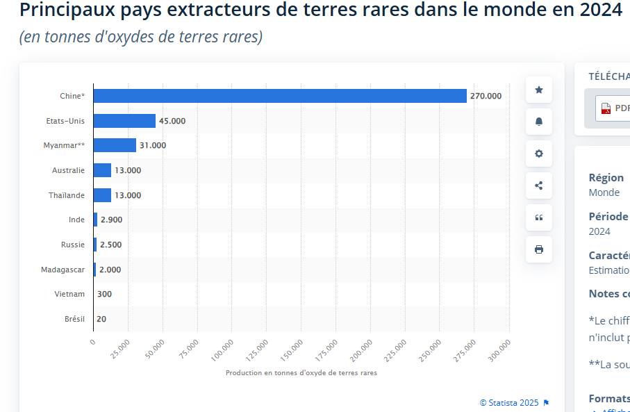 Les terres rares sont 17 éléments chimiques essentiels à nos technologies (batteries, éoliennes, smartphones, etc.). On les trouve en très faible quantité, mais leur demande est en forte hausse. - Pourquoi c’est stratégique :