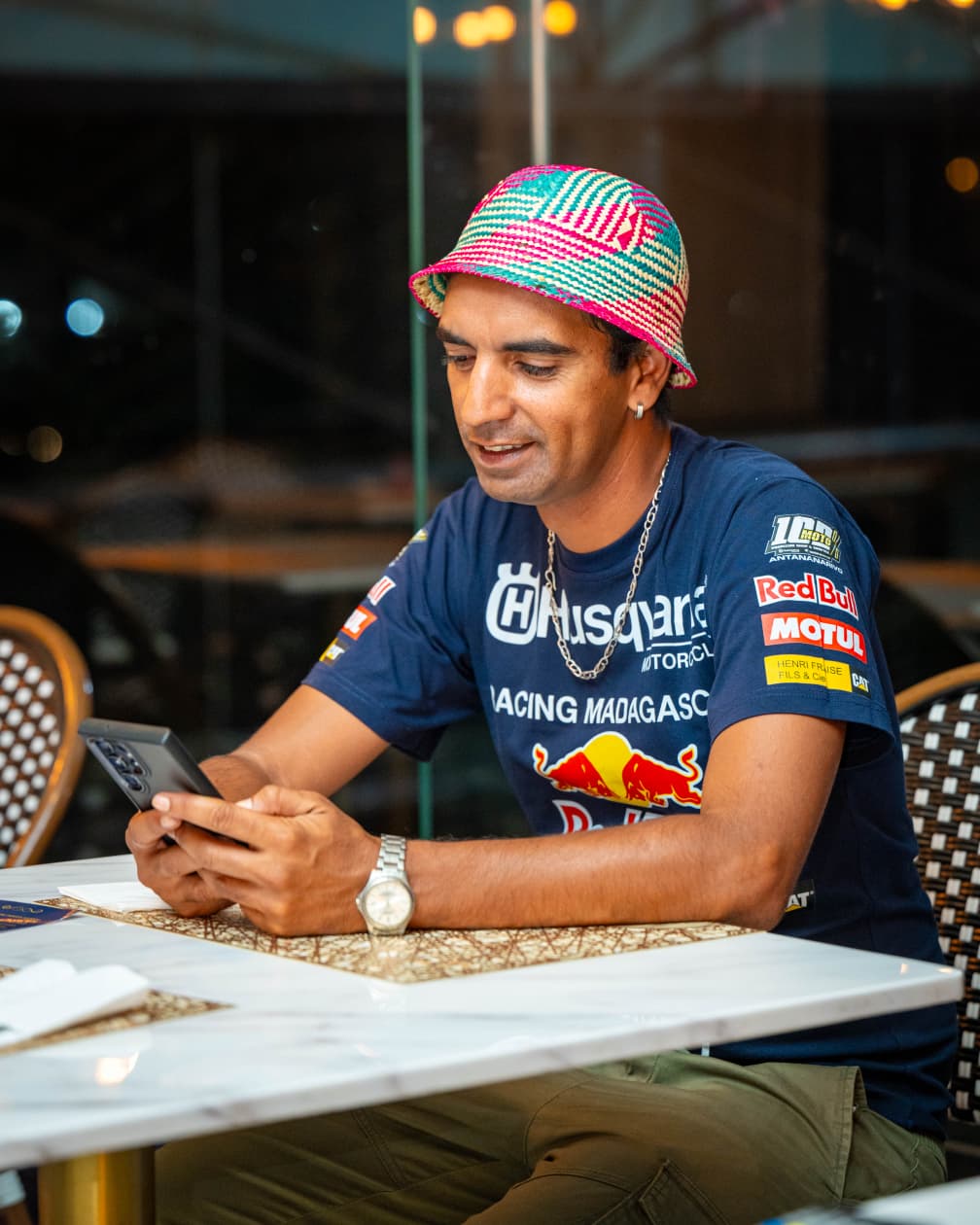 Sa persévérance finit par payer lorsqu’il décide d’approcher directement les pilotes de rallye. Son deal ? Proposer des clichés gratuits pour prouver sa valeur. Il finance lui-même ses déplacements, s’aventurant parfois dans des contrées loin de la ville, comme c’était le cas de rallye Boeny où il était dans la brousse profonde pour capturer l’instant T. Une fois, il était perdu sur un circuit loin de toute ville, sans rien à manger, il doit sa survie gastronomique à la solidarité entre photographes. Ensemble, ils cotisent pour qu’une femme vivant au bord de la route leur prépare un repas de fortune. C’est cette école du terrain qui a forgé son œil et sa réputation.